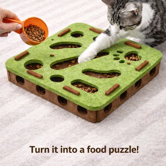 Transform mealtime into a Cognitive Gym for your cat! Simply drop kibble into the felt maze, triggering dynamic tactile foraging that encourages your cat to calculate angles and "hunt" for their food. This method not only satisfies their natural hunting instincts but also drains excess energy without the noise of plastic toys, leaving you with quieter mornings.