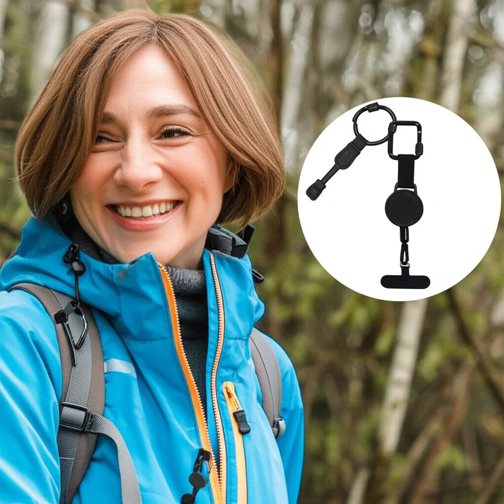 I do a lot of solo scrambles where I need both hands to climb but still want to document the view. Having my phone tethered to my shoulder strap means I can Capture Without Worry. I used to keep my phone buried in a zipped pocket because I was terrified of dropping it down a cliffside, which meant I missed half the shots. Now it's always accessible. The steel clip is rugged and hasn't rusted despite some rainy PNW hikes. High-quality gear that just works.